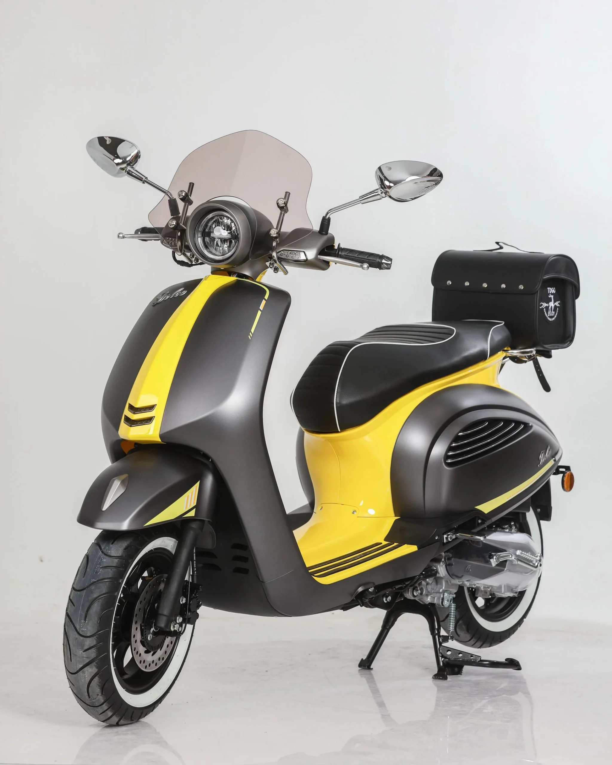 Le SMT Dolce 125 adopte un look néo-rétro aux lignes familières, élaboré par la marque tunisienne SMT pour offrir une alternative accessible et stylée dans le segment des scooters classiques. Sa silhouette iconique, rehaussée par une finition noir mat et une signature lumineuse Full LED, s’inspire des codes esthétiques italiens les plus célèbres pour une présence élégante en milieu urbain. Côté mécanique, il franchit un palier technologique en intégrant un moteur de 125 cc à injection électronique (EFI), garantissant des démarrages immédiats, une consommation réduite à 2,2 L/100 km et une souplesse de conduite accrue. La transmission CVT et le système de démarrage silencieux ISG assurent une expérience utilisateur fluide, tandis que le freinage à disque avec système CBS permet des arrêts sécurisés et équilibrés dans le trafic dense. Le prix du SMT Dolce 125 en Tunisie est de 5 999 DT, un positionnement compétitif qui inclut de série un sac arrière vintage très pratique. Ce modèle est le choix de prédilection pour les citadins qui recherchent le charme du design rétro combiné à la fiabilité d’une motorisation moderne à injection
