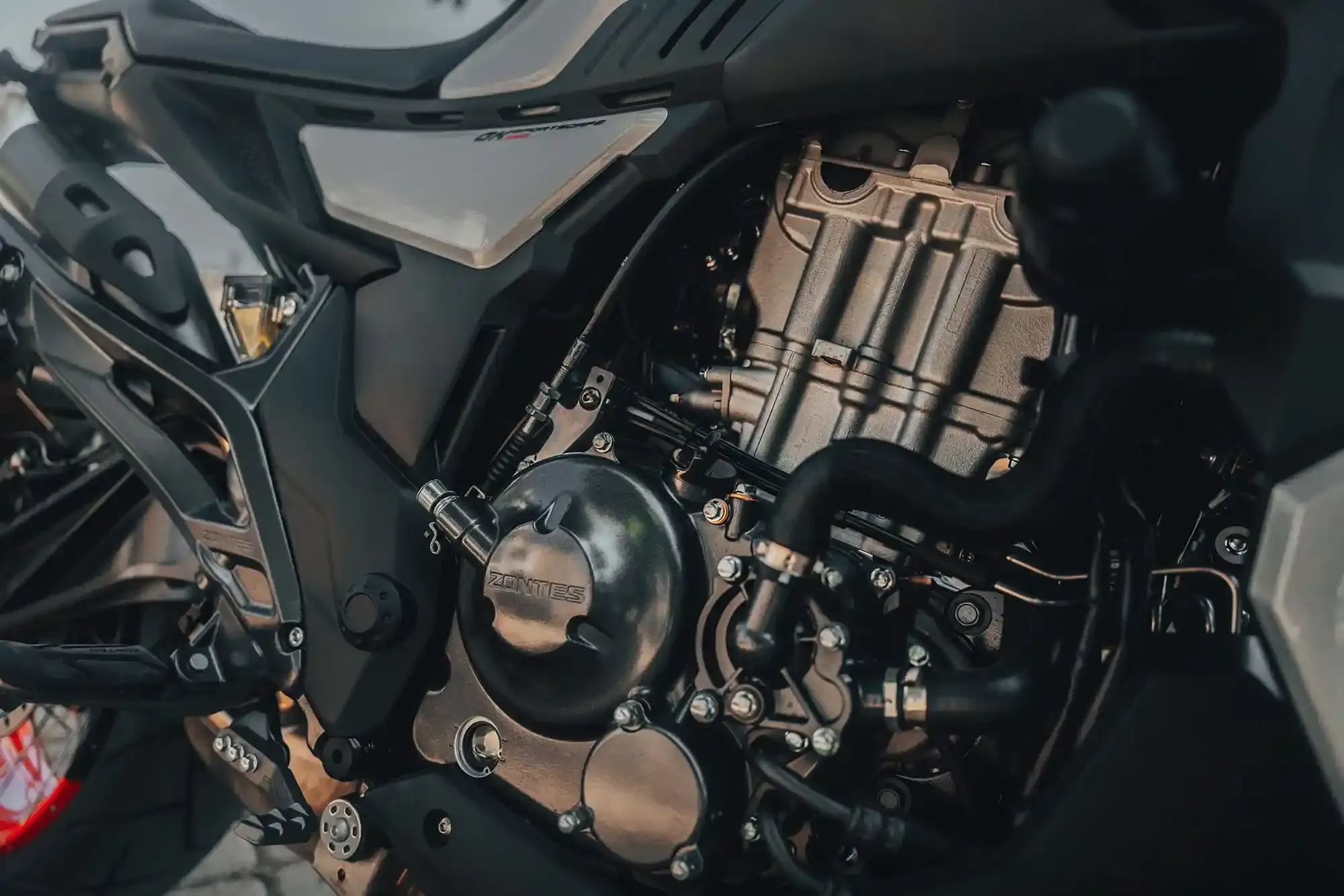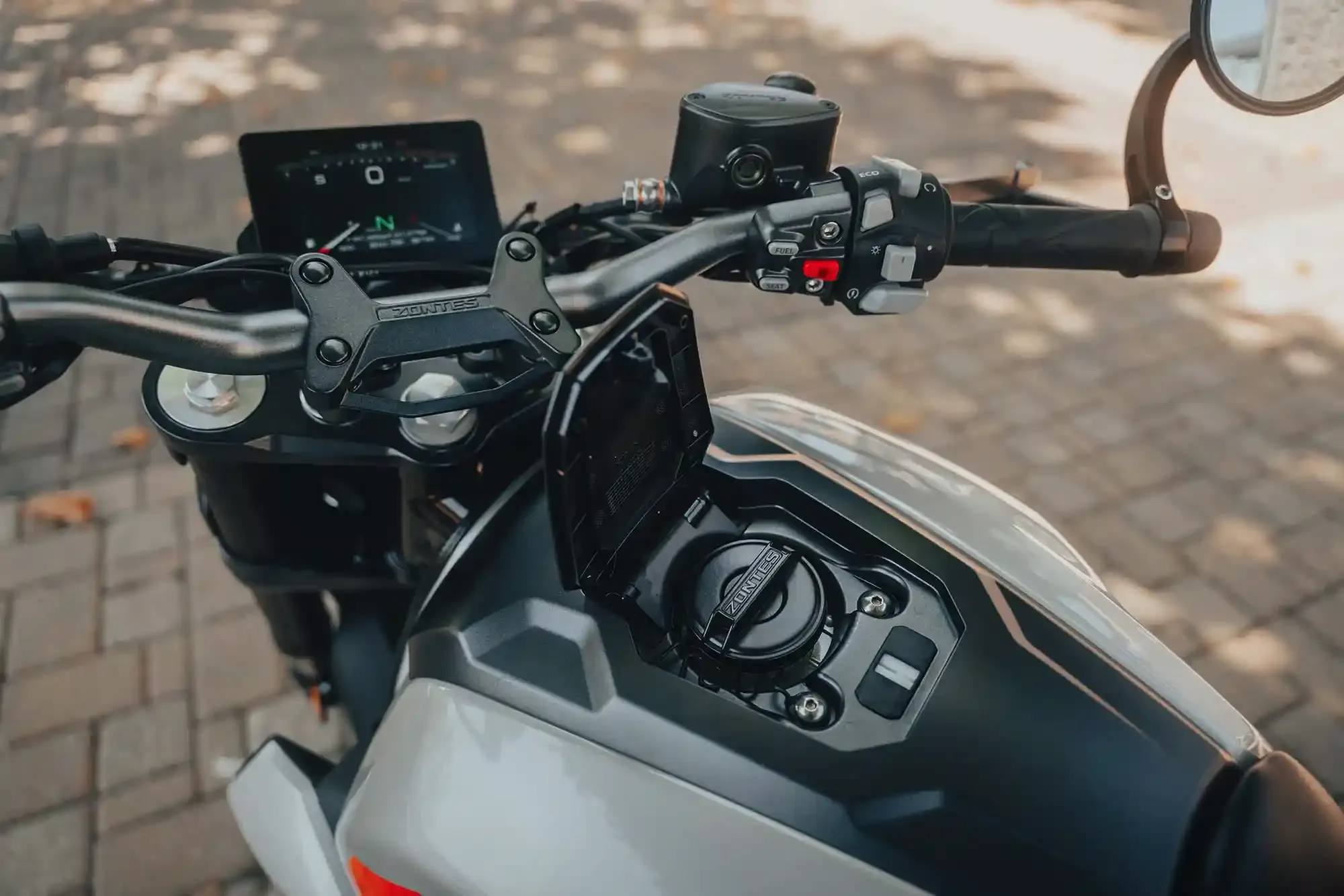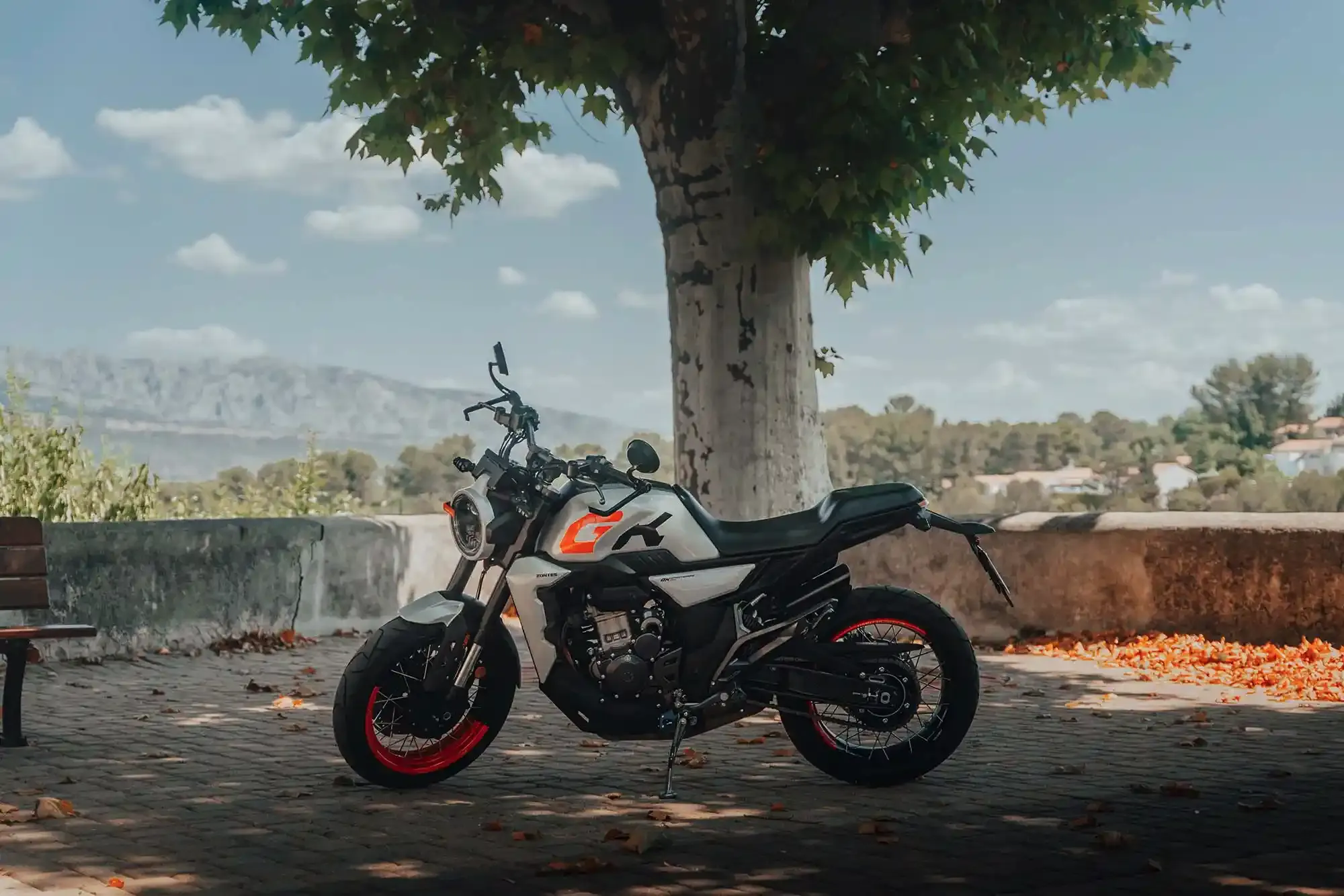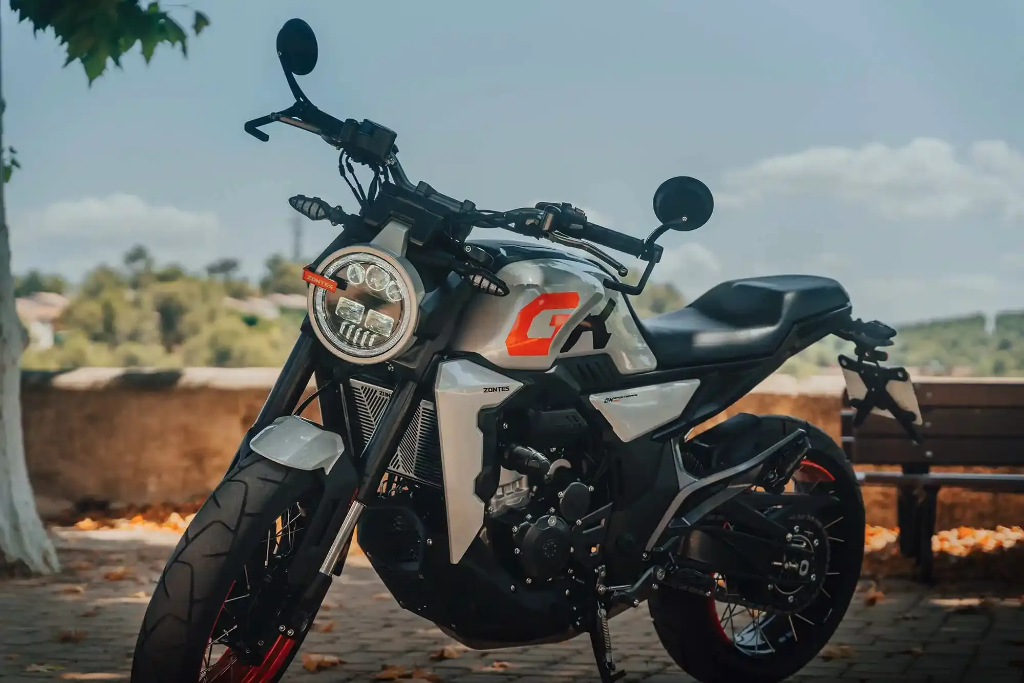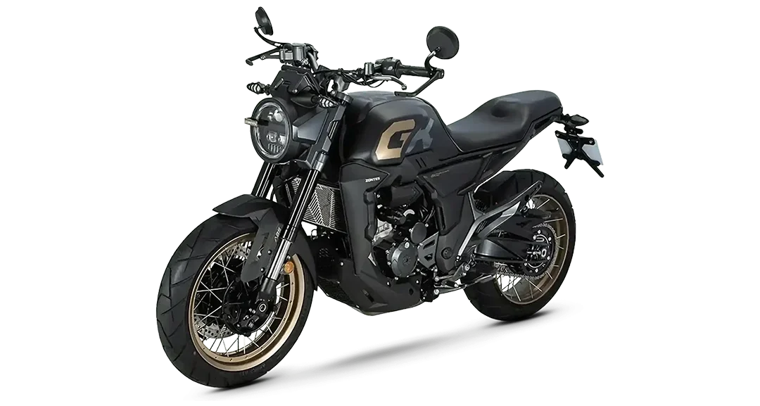 La Zontes 350 GK est un roadster au design “Sports Café” unique, élaboré pour fusionner l’élégance intemporelle des motos rétro avec l’agressivité et la technologie des machines modernes. Sous ses lignes épurées et son réservoir imposant de 17 litres, elle abrite un moteur monocylindre de 350 cm³ à Injection Électronique, développant une puissance de 39 ch et un couple de 32,8 Nm, offrant une réponse vive dès les bas régimes. Le prix en Tunisie de la Zontes 350 GK est proposé à partir de 18 500 DT (valeur indicative hors douane). Pour garantir une sécurité optimale en toutes circonstances, elle est équipée de série d’un système de freinage ABS double canal haute performance. Sa partie-cycle se distingue par des jantes à rayons tubeless, une fourche inversée de grand diamètre et un bras oscillant en aluminium apparent, assurant une stabilité rigoureuse et un confort de premier plan. On peut comparer son équilibre stylistique et ses prestations dynamiques à ceux d’une Husqvarna Vitpilen 401 ou d’une Honda CB300R. Ce modèle se dote également d’un équipement complet incluant un embrayage anti-dribble, un écran TFT couleur avec surveillance de la pression des pneus (TPMS) et des commodos rétroéclairés, offrant une expérience de conduite à la fois valorisante et sécurisée pour les trajets urbains comme pour les balades sur routes secondaires