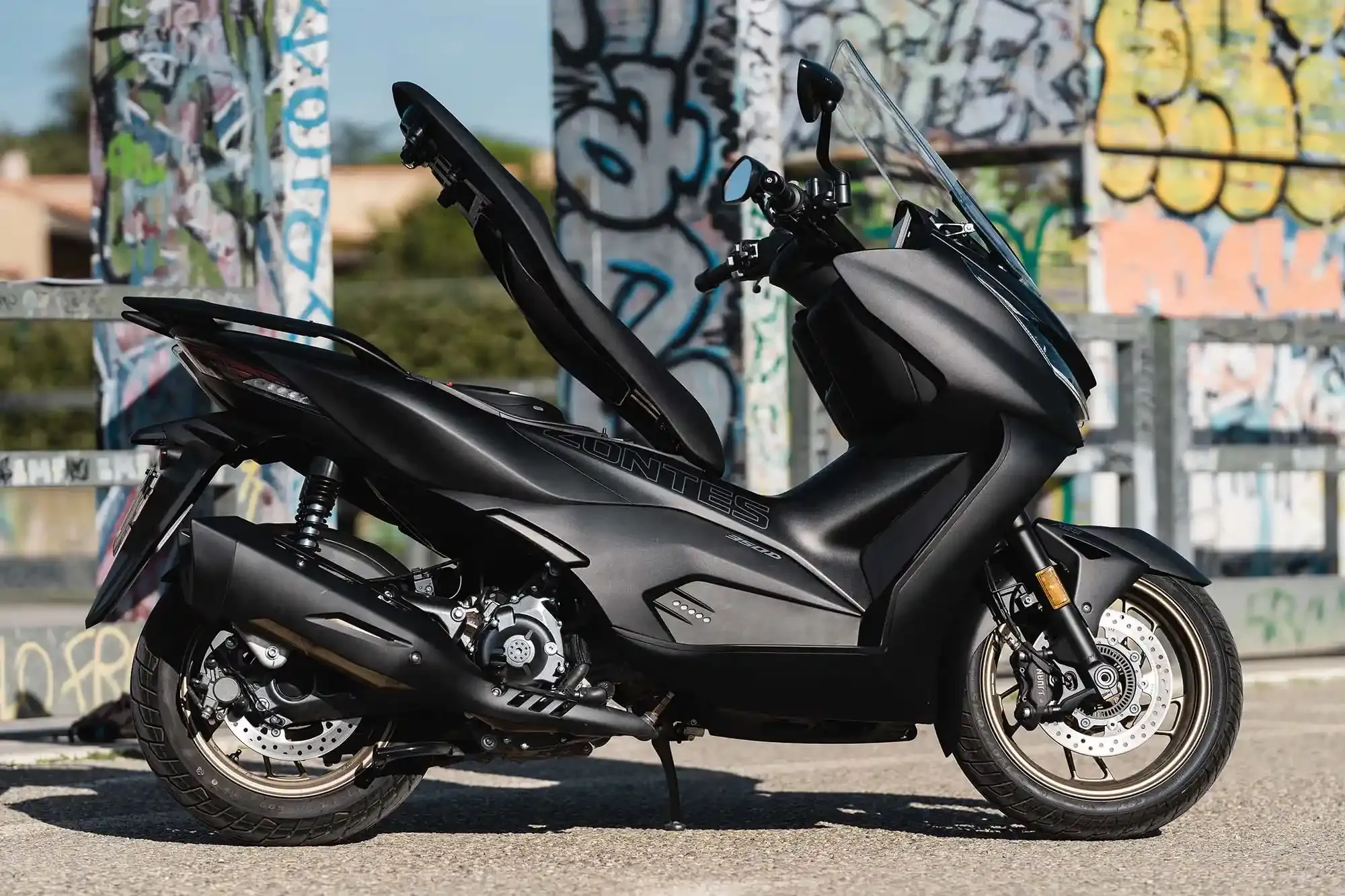 Le Zontes 368 D est un maxi-scooter au tempérament sportif, élaboré pour offrir une réponse moteur directe et une agilité optimisée lors des trajets quotidiens. Plus compact que les modèles de type GT, il est propulsé par un moteur monocylindre de 368 cm³ à Injection Électronique Bosch, délivrant une puissance de 38 ch pour un couple de 40 Nm. Le prix en Tunisie du Zontes 368 D est proposé à partir de 15 500 DT (valeur indicative hors douane). Pour assurer une sécurité active constante, il intègre de série un système de freinage ABS double canal haute performance. On peut comparer ses spécifications techniques et sa maniabilité à celles d’un Honda Forza 350 ou d’un Yamaha XMAX 300. Côté équipement, il dispose d’un éclairage full LED, d’un écran TFT couleur avec connectivité smartphone et d’un système de démarrage sans clé, offrant une solution de mobilité moderne et efficace pour les utilisateurs exigeants