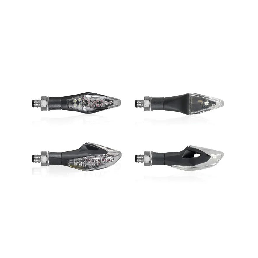 Clignotants à LED avec feu de position à l’avant et feu de stop intégré pour l’arrière.